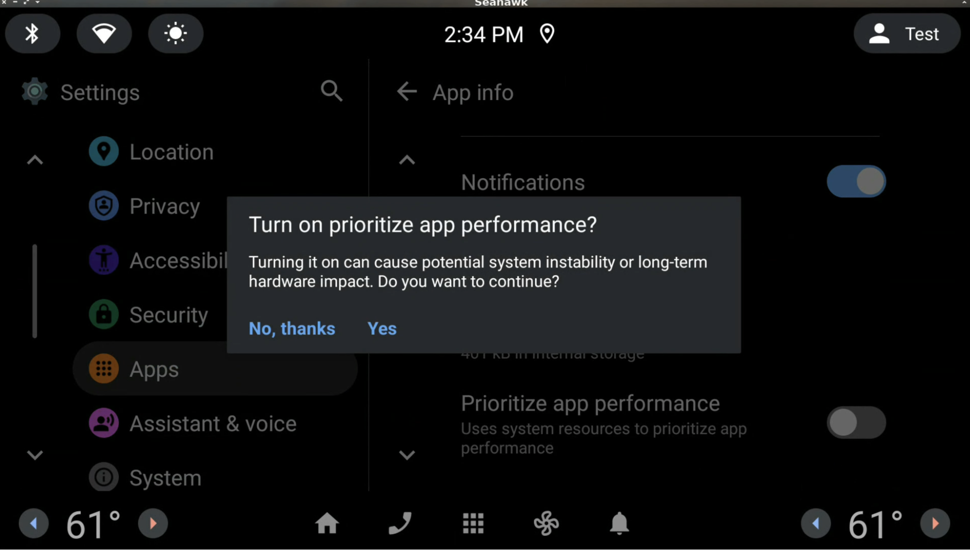 هنگامی که یک برنامه یا سرویس به طور مکرر از ورودی/خروجی دیسک بیش از حد استفاده می کند (به عنوان مثال، داده ها را فراتر از آستانه های تعریف شده روی دیسک می نویسد) و در صورت استفاده بیش از حد از منابع، امکان خاتمه آن ایمن است، پس از اینکه وسیله نقلیه وارد حالت اجازه راننده- حواس پرتی شد به کاربر اطلاع داده می شود.