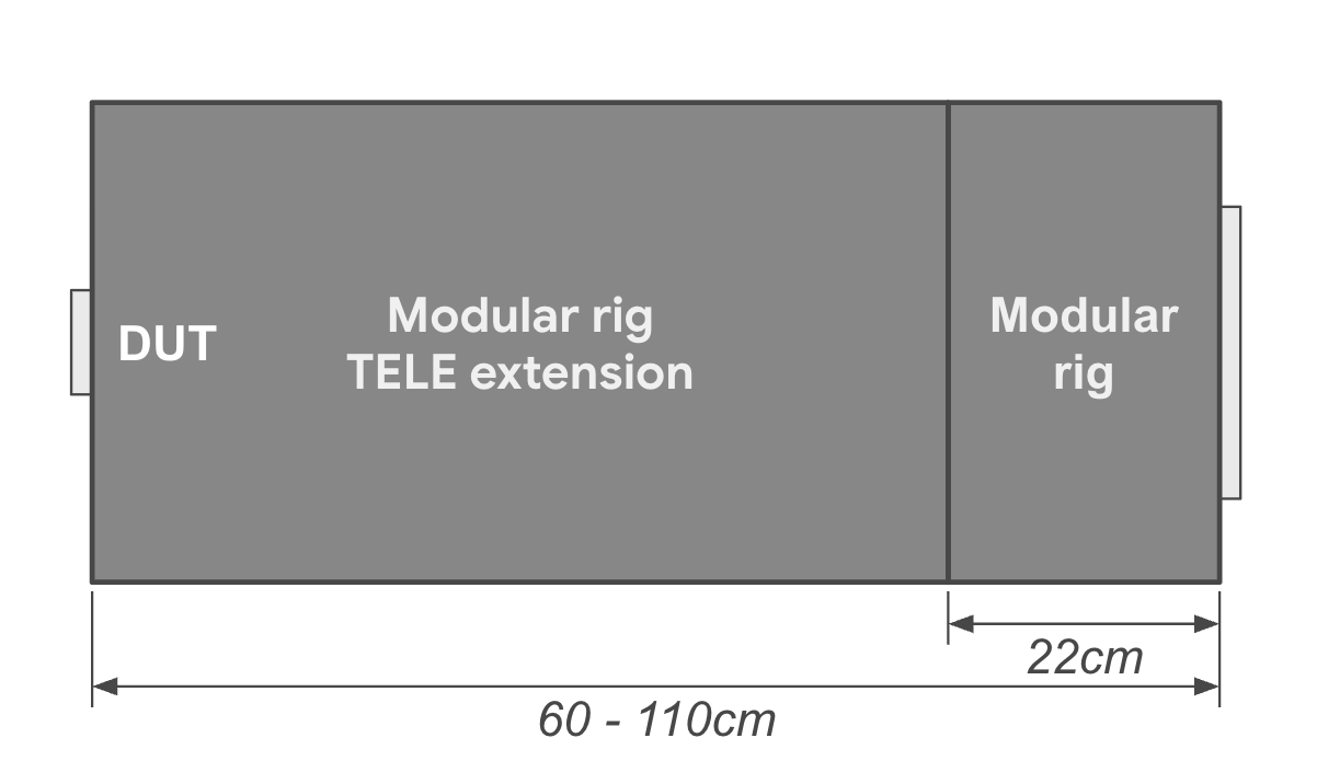 ITS-in-a-box متشکل از یک جعبه پلاستیکی است که با لیزر از نقشه های طراحی به کمک کامپیوتر (CAD)، یک تبلت نمودار و یک دستگاه در حال آزمایش (DUT) برش داده شده است. جدول زیر ویژگی ها و مشخصات دکل های مختلف ITS-in-a-box موجود را شرح می دهد. برای انتخاب ریگ مناسب، میدان دید خاص و حداقل فاصله فوکوس DUT را در نظر بگیرید. برای سیستم های دوربین با میدان دید 60 تا 110 درجه و حداقل فاصله فوکوس 22 تا 31 سانتی متر، ما یک دکل پایه مدولار را برای سازگاری آن توصیه می کنیم. اگر سیستم دوربین دارای یک لنز تله فوتو با حداقل فاصله فوکوس بین 31 سانتیمتر و 110 سانتیمتر است، ما یک دستگاه پایه ماژولار با پسوند تله را توصیه میکنیم که کاملاً با فاصله فوکوس لنز مطابقت داشته باشد. اکستنشن های تله در طول های 50 تا 90 سانتی متر در دسترس هستند.