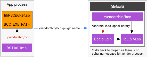 Android 8.0 এবং উচ্চতর সংস্করণে চলমান একটি ডিভাইসে, RenderScript ব্যতীত সমস্ত একই-প্রক্রিয়া HALs (SP-HALs) লিঙ্কার নেমস্পেস sphal