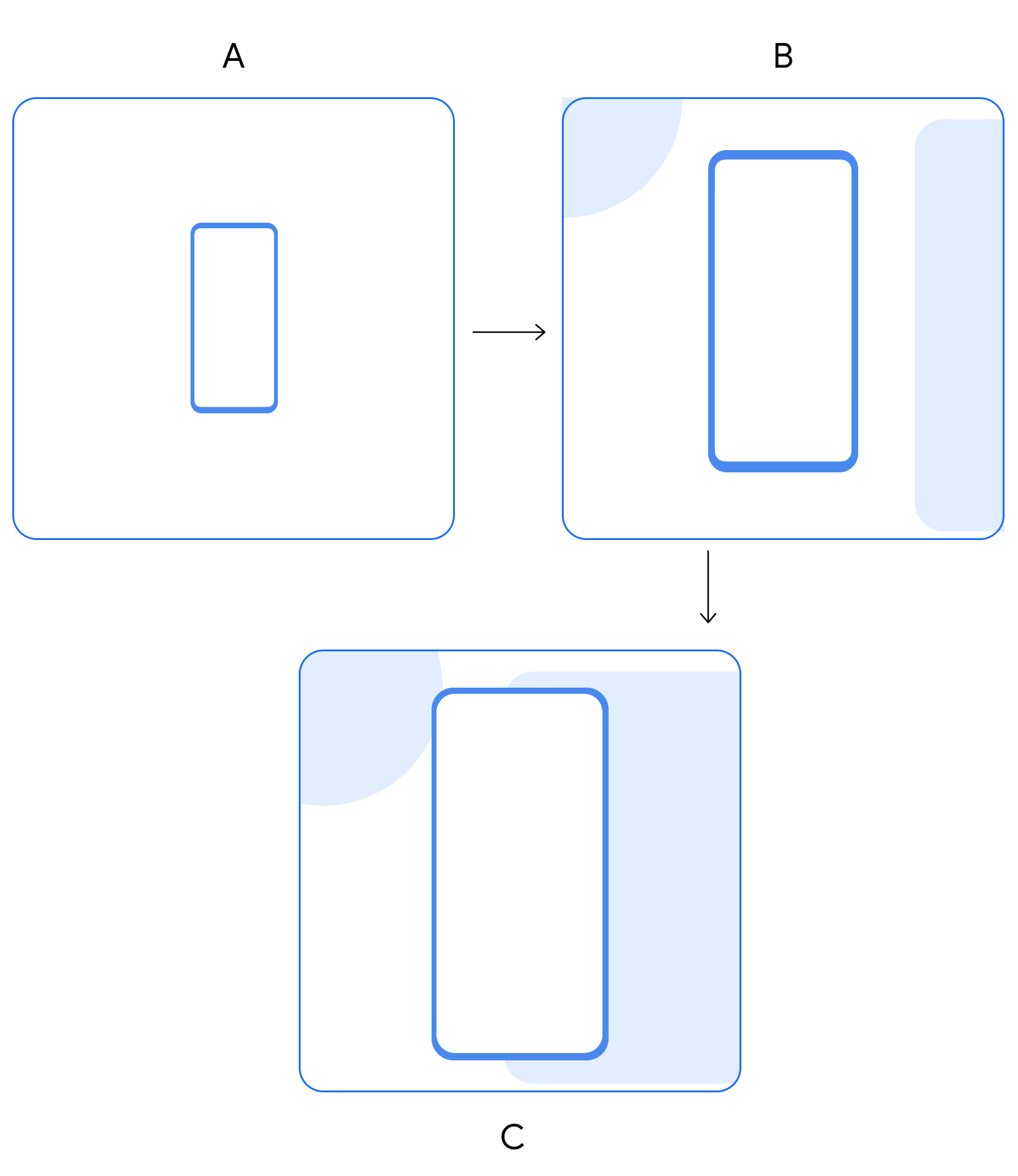 - 手机尺寸变小。若干形状开始进入屏幕。