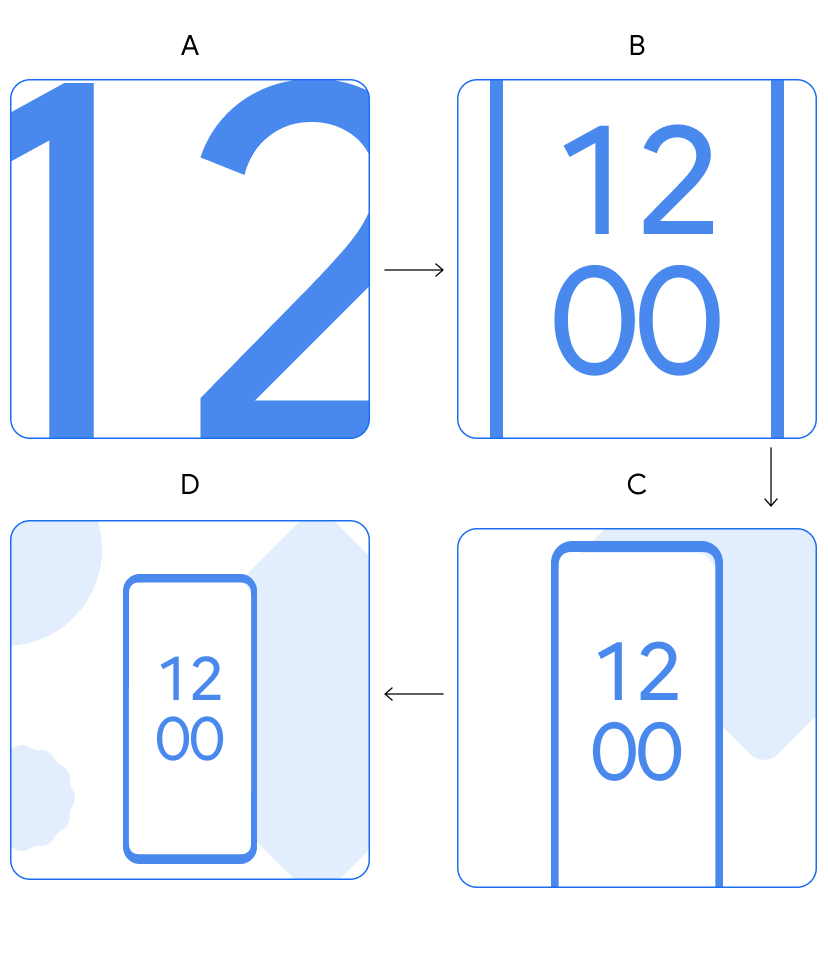 Se você optar por adaptar o estilo do Material You, use as cores e formas padrão mostradas no exemplo.