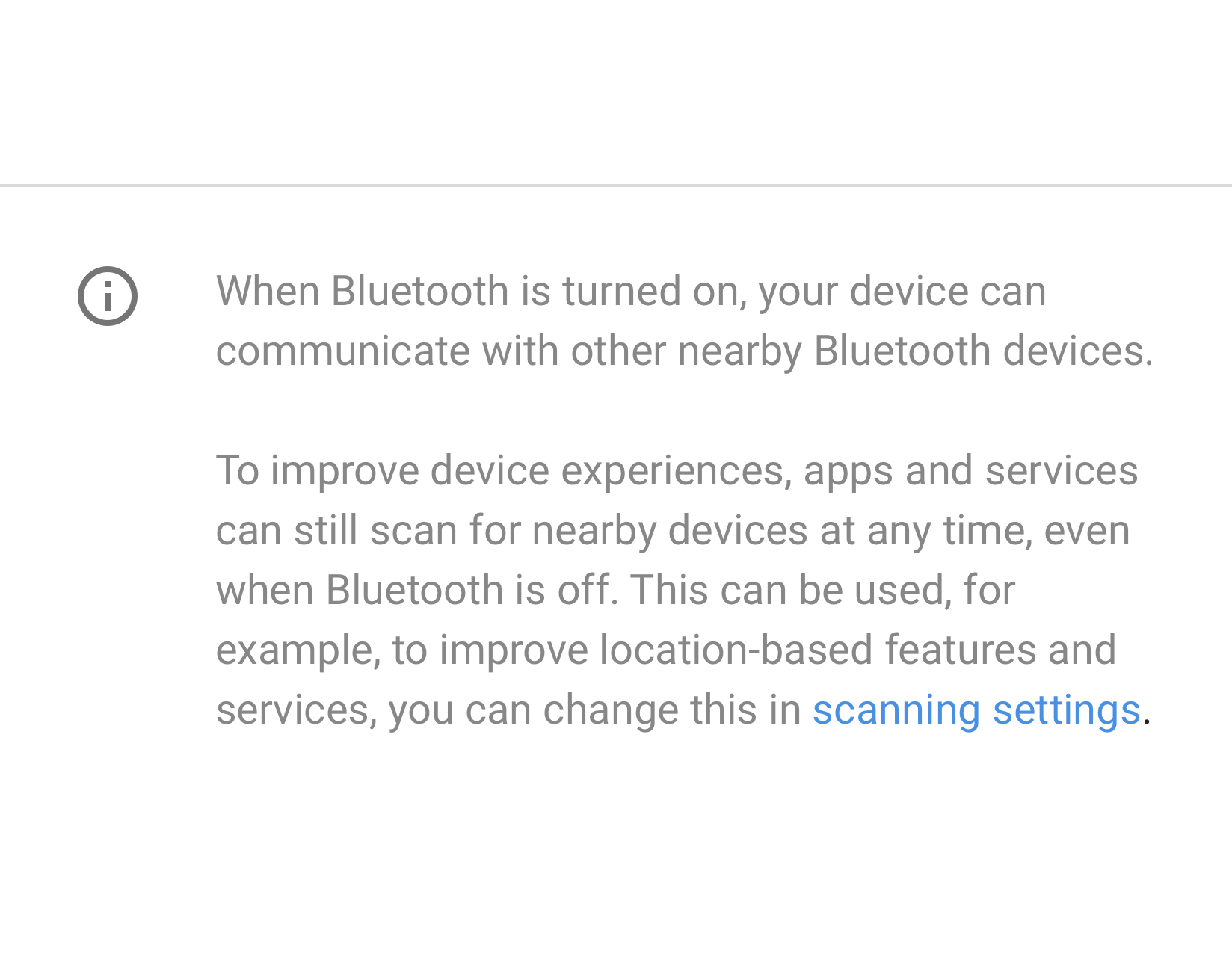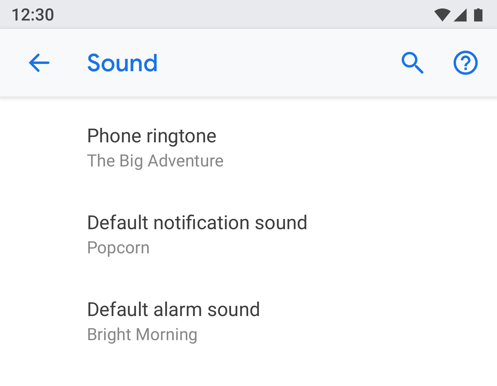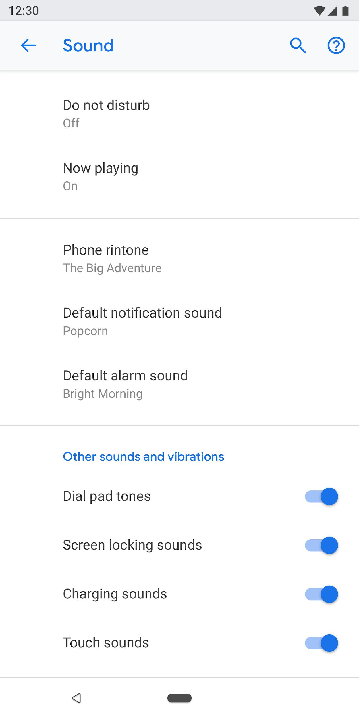 If a screen has many settings, they can be grouped and separated by a divider. Unlike older Android versions, dividers are now used to cluster settings in a group, rather than separating individual settings.
