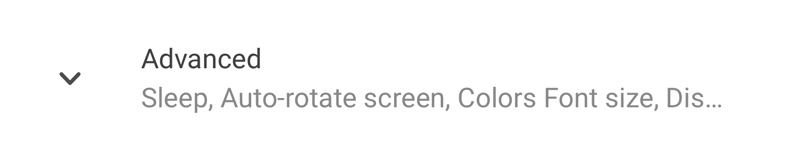 Here, the subtext shows the titles of the settings that are hidden. The subtext should be only one line. Additional text gets truncated with an ellipsis.