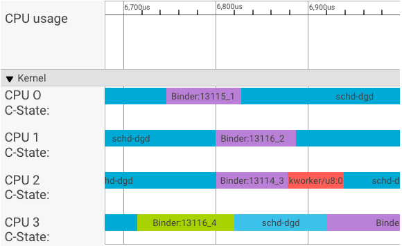 Un visualizador de systrace muestra las transacciones de la siguiente manera: